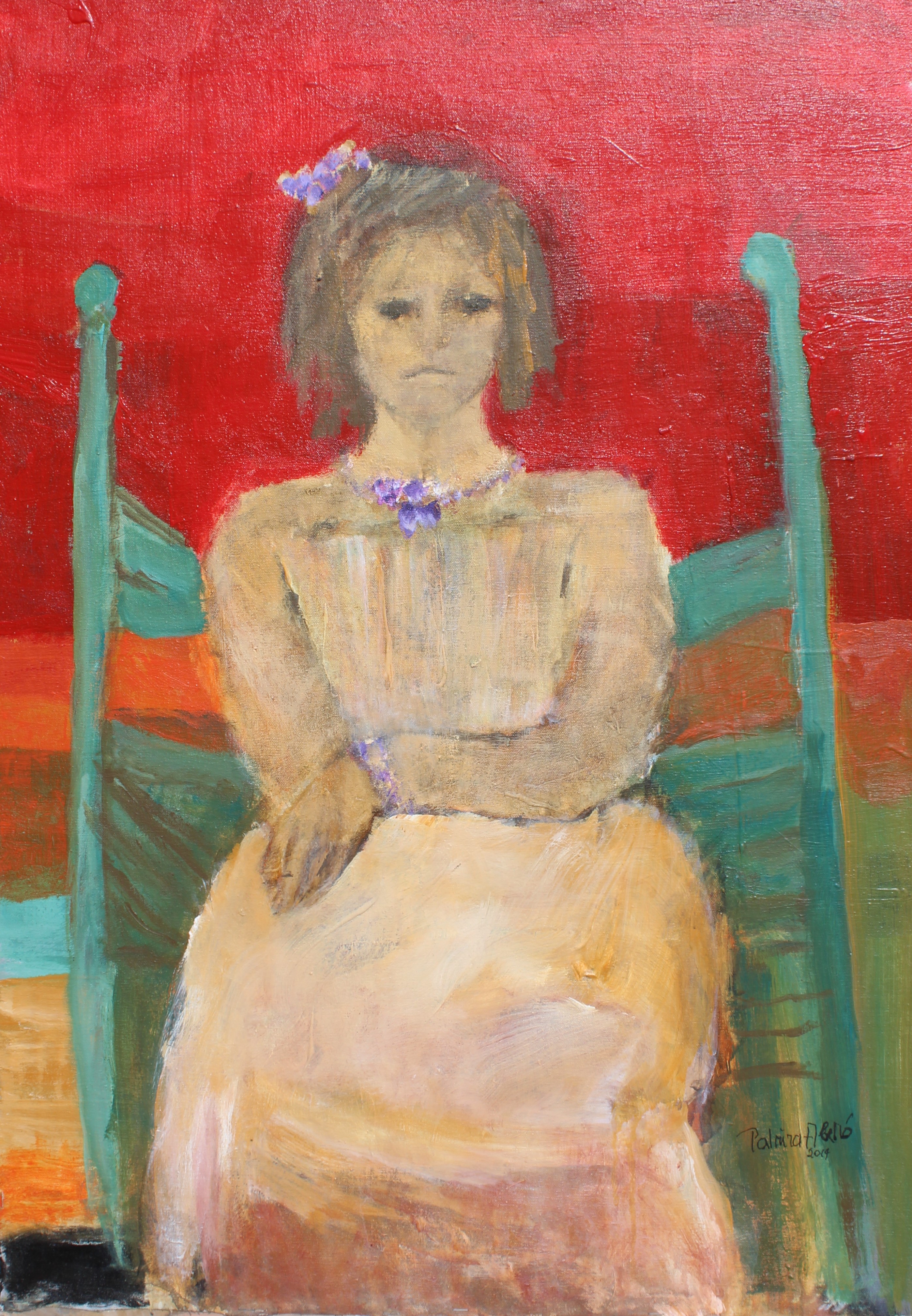 285 – 69×92 Niña sentada en rojo 2014